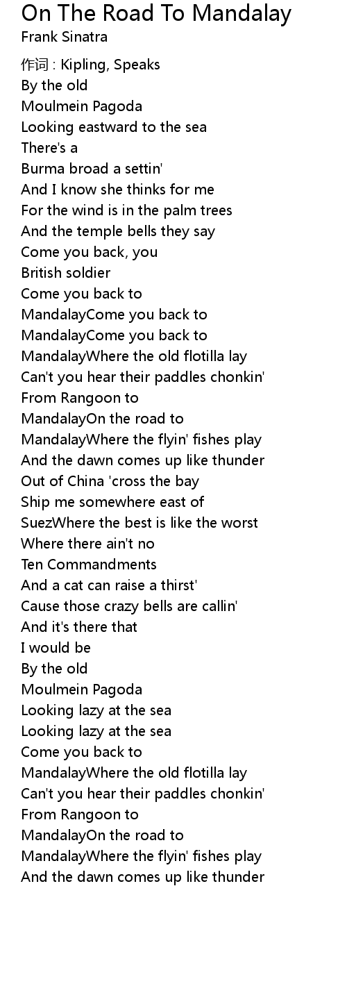| Song | On The Road To Mandalay |