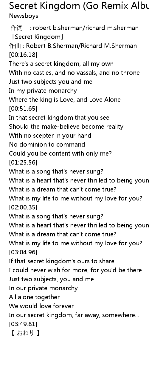 | [03:38.65] | In our secret kingdom, far away, somewhere... |