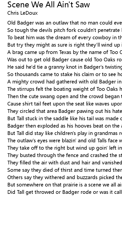 But somewhere on that prairie is a scene we all ain't saw |
