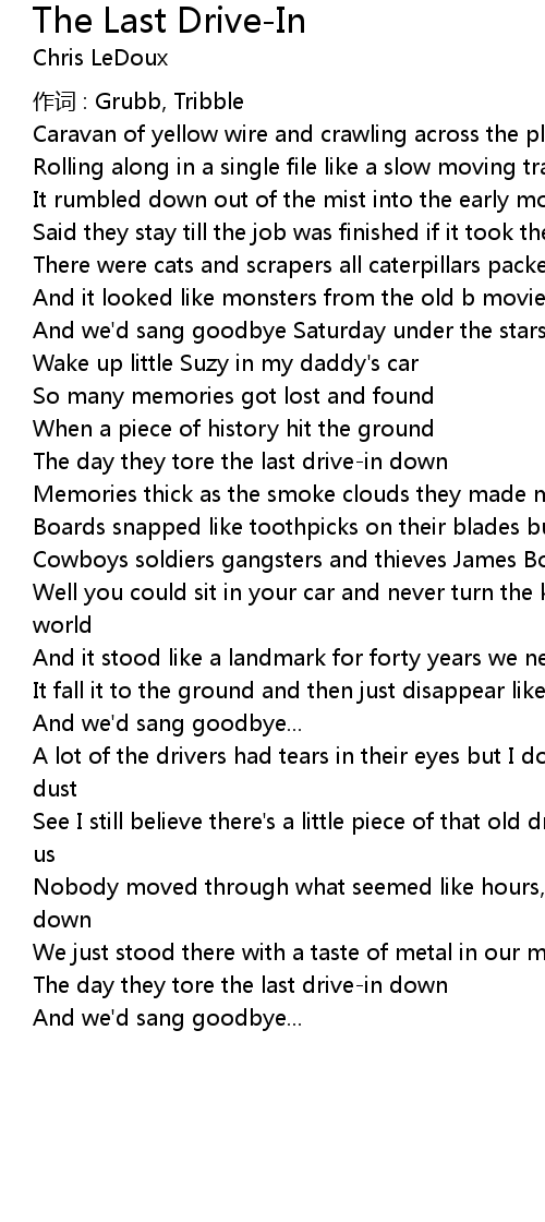 | See I still believe there's a little piece of that old drive-in left in all of us | |