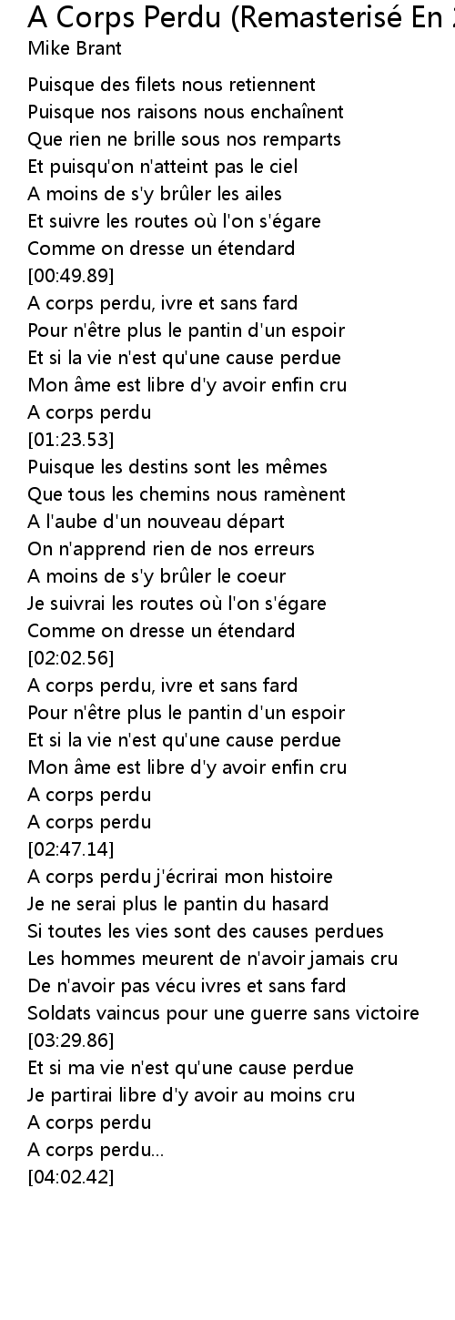 | [02:47.54] | A corps perdu j'écrirai mon histoire |