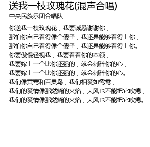 | 你送我一枝玫瑰花,我要诚恳谢谢你, | |