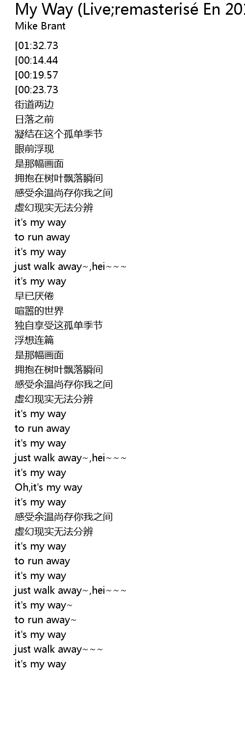 | [03:07.99][01:32.73][00:09.19] | my way |