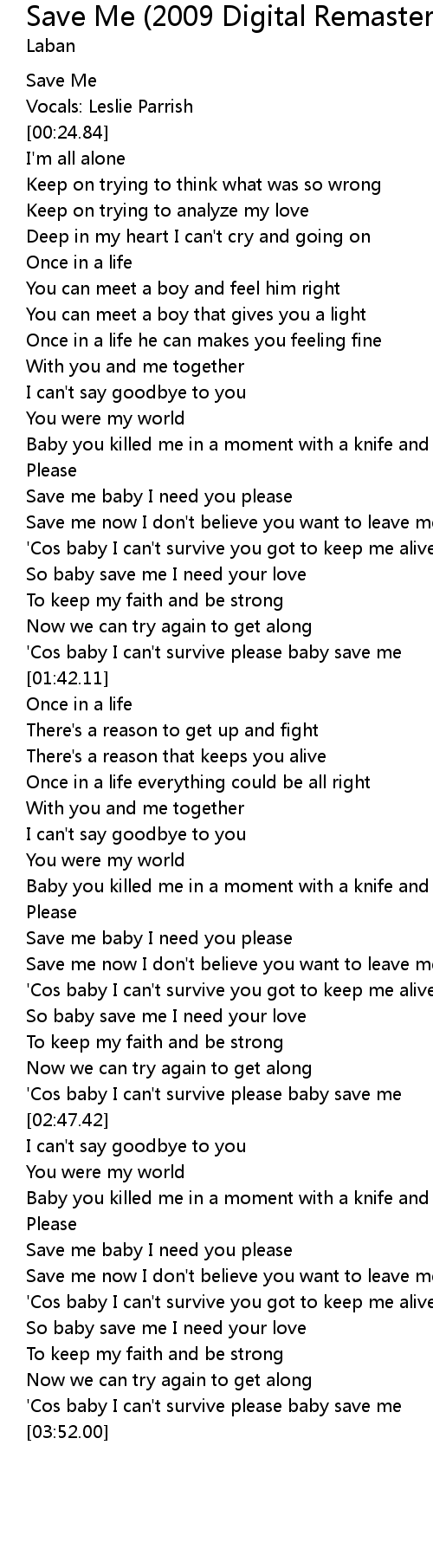 [03:46.46] 'Cos baby I can't survive please baby save me