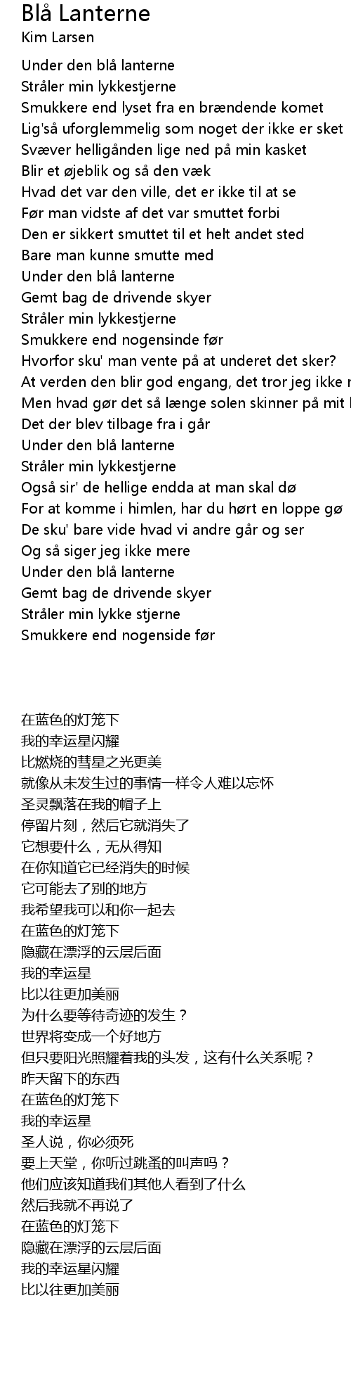 | Song | Blå Lanterne |