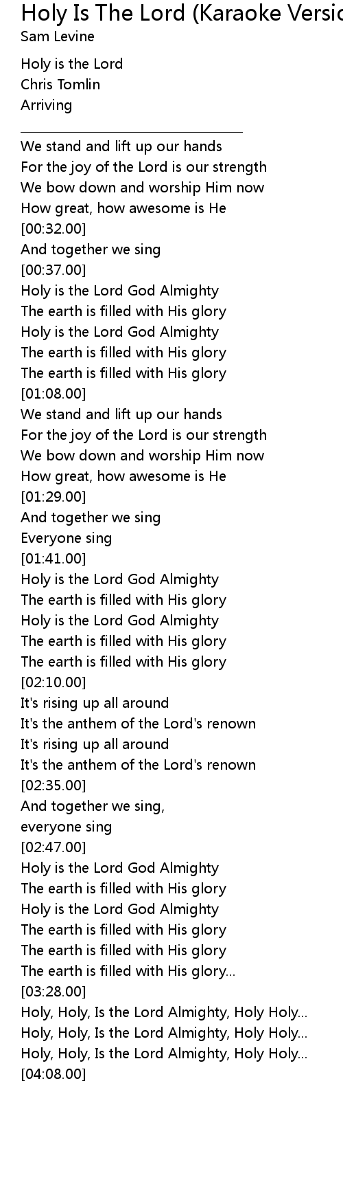 [03:34.00] Holy, Holy, Is the Lord Almighty, Holy Holy...
