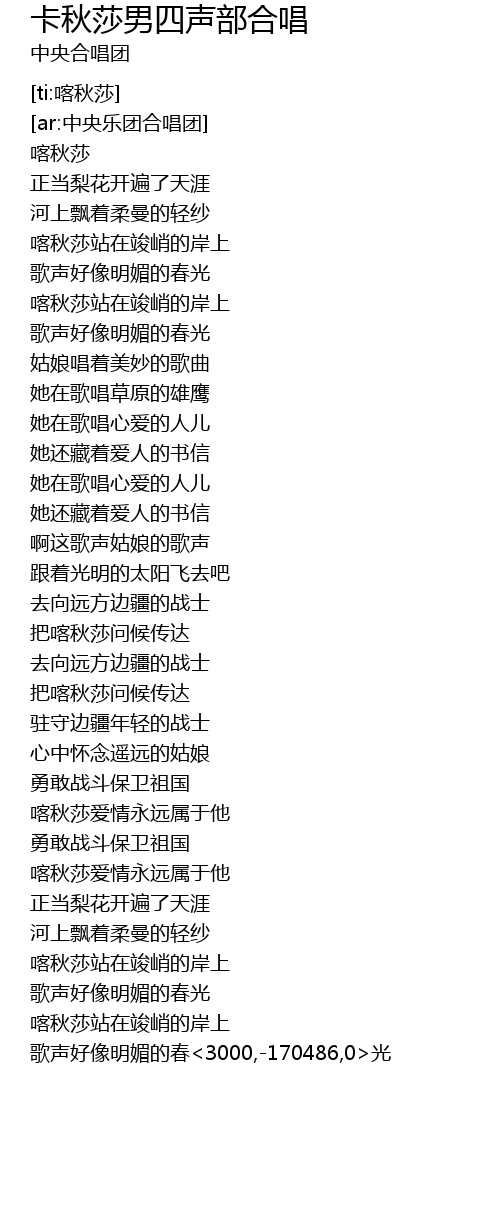 | [01:55.266] | 喀秋莎爱情永远属于他 |