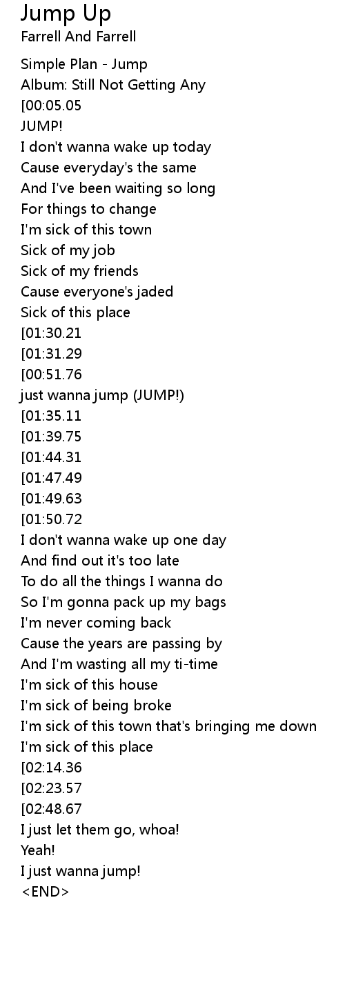 [01:00.72][01:50.72][01:55.56] I just wanna jump