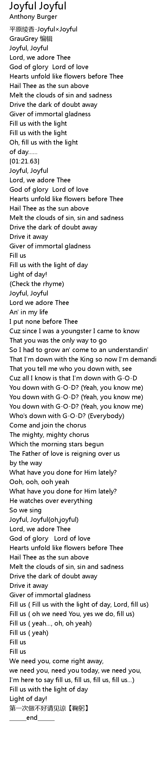 | [03:09.74] | Joyful, Joyful oh, joyful |