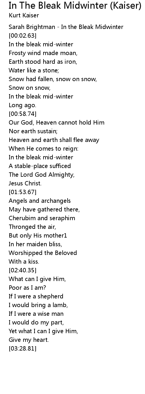 [00:01.22] Sarah Brightman - In the Bleak Midwinter