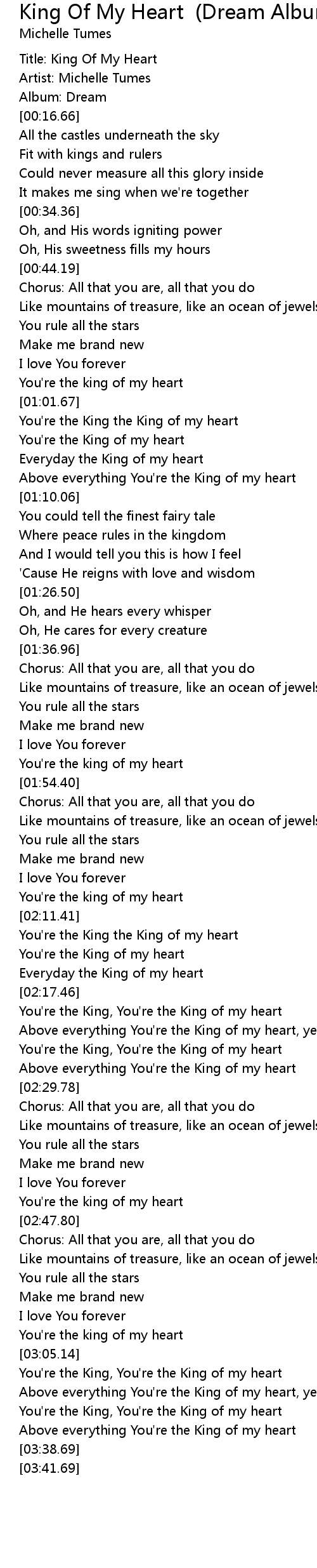 You're the King, You're the King of my heart |