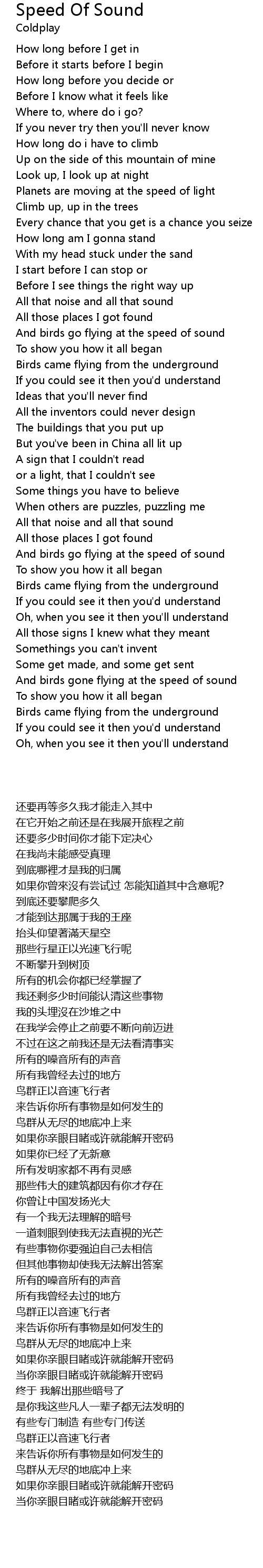 | [01:50.420] | And birds go flying at the speed of sound |