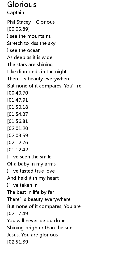 | [02:31.06] | Jesus, You are glorious |