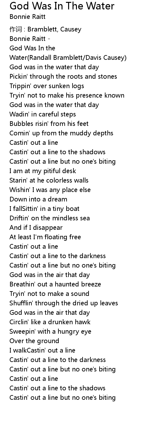 | Song | God Was In The Water |