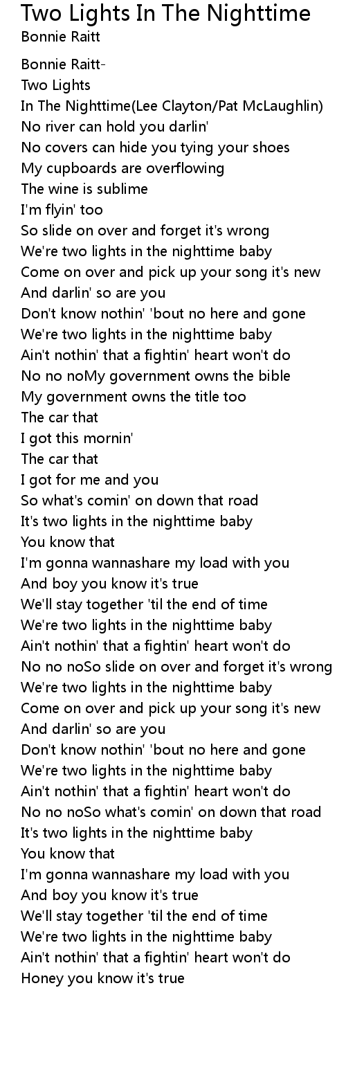 It's two lights in the nighttime baby |