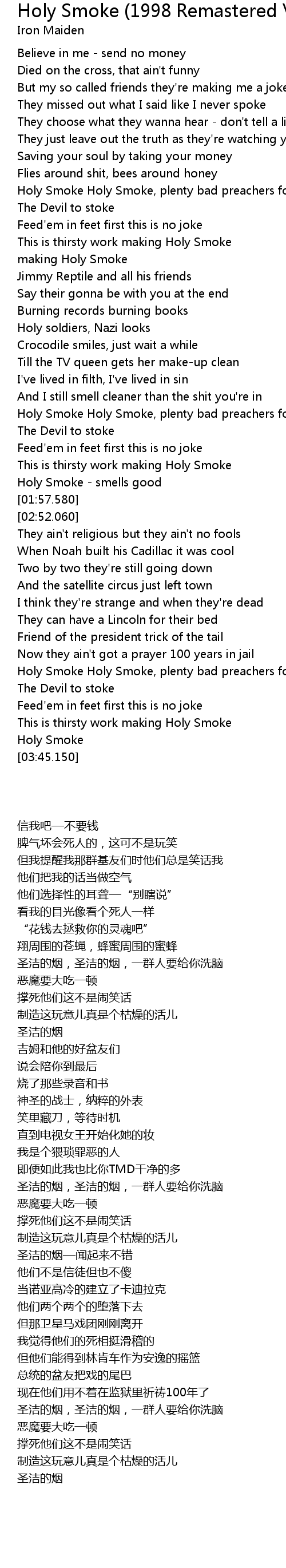 Holy Smoke (1998 Remastered Version) Lyrics