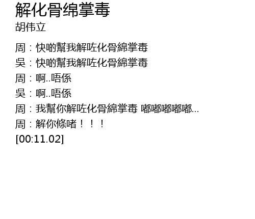 | [00:02.09] | 吳:快啲幫我解咗化骨綿掌毒 |