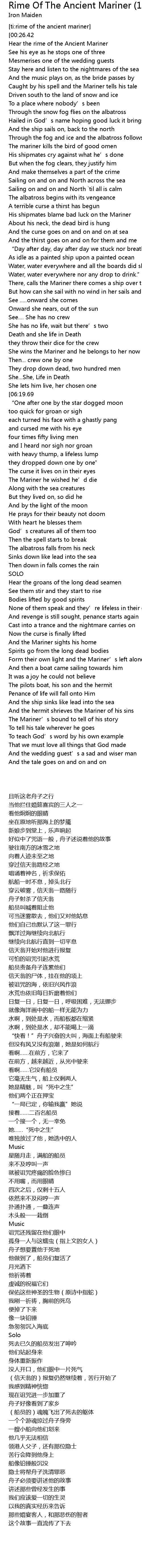 | [00:17.21] | Hear the rime of the Ancient Mariner |