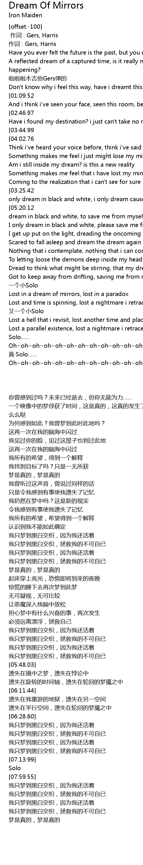 | [05:59.58] | Lost in a dream of mirrors, lost in a paradox |