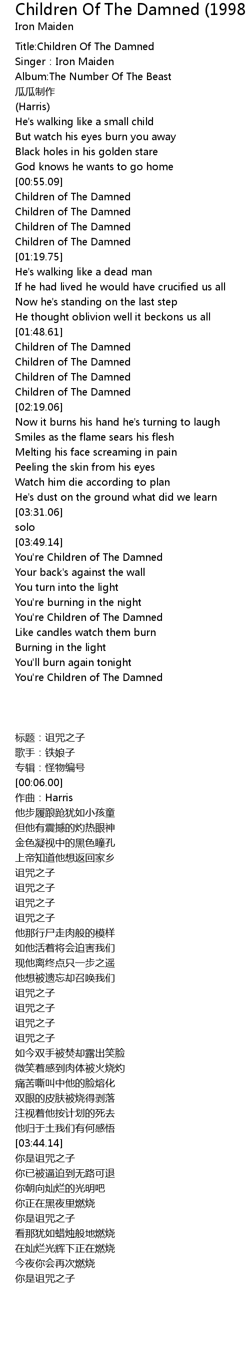 | Song | Children Of The Damned (1998 Digital Remaster) |