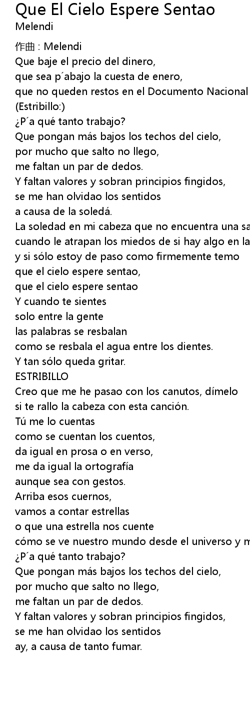 | que el cielo espere sentao | |