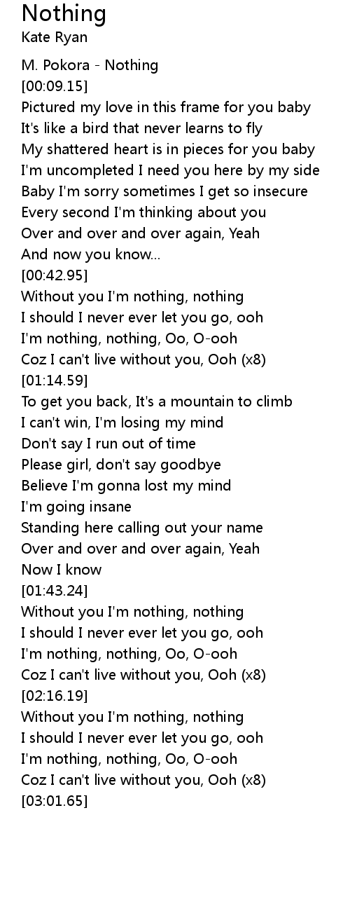 | [01:44.24] | Without you I'm nothing, nothing |