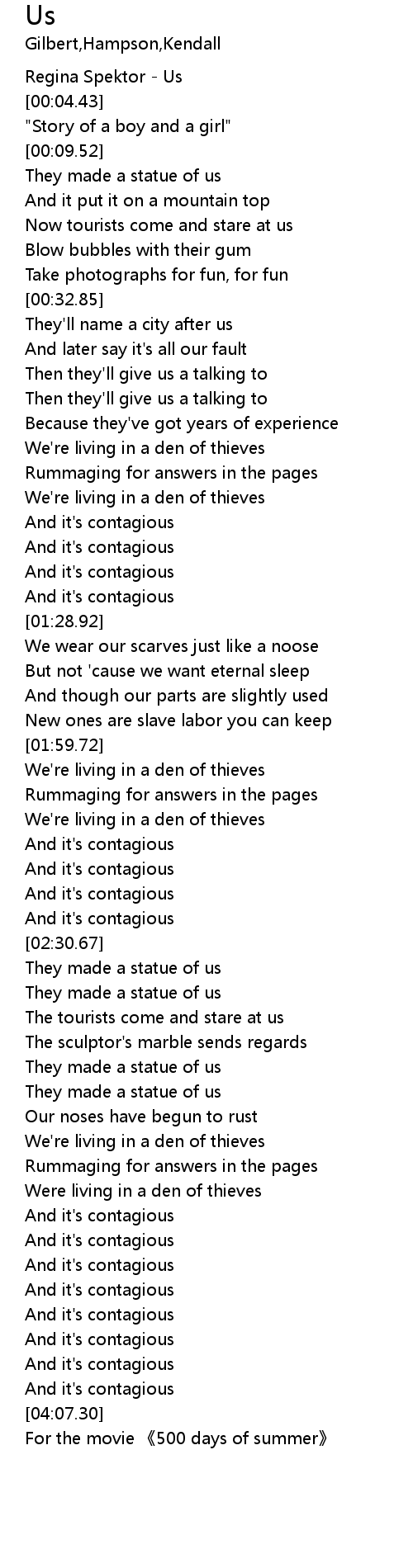 | [04:09.16] | For the movie 500 days of summer |