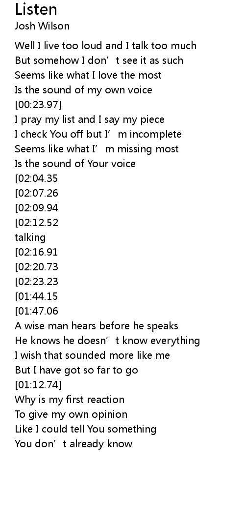 | [02:46.27][01:44.15][00:55.64] | I’ve got to learn to listen |