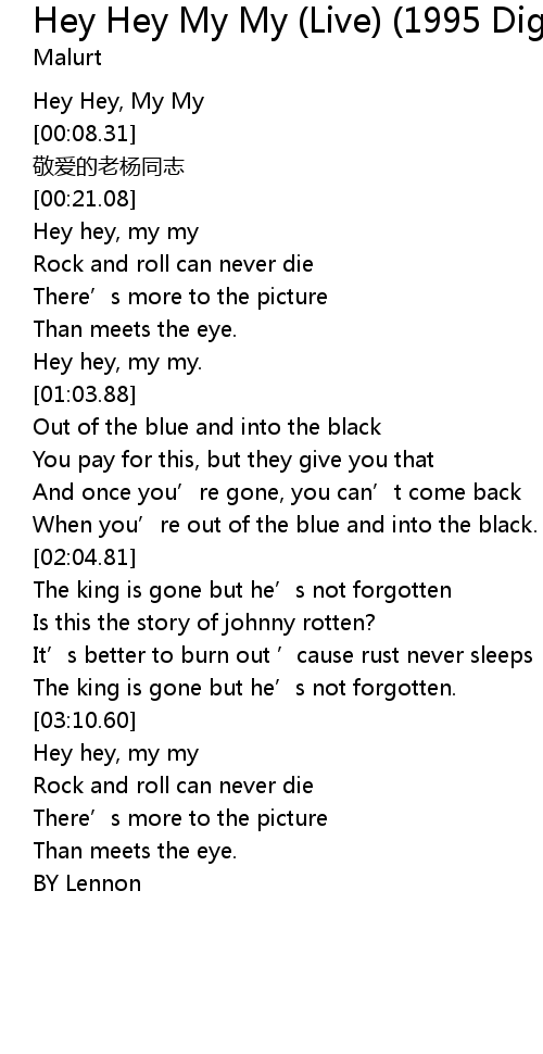 | [02:54.57] | It' s better to burn out ' cause rust never sleeps |