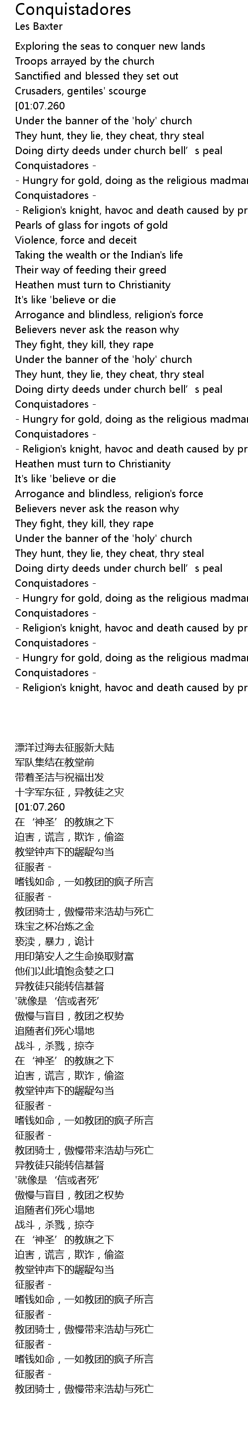 | [03:47.010] | Hungry for gold, doing as the religious madman told |