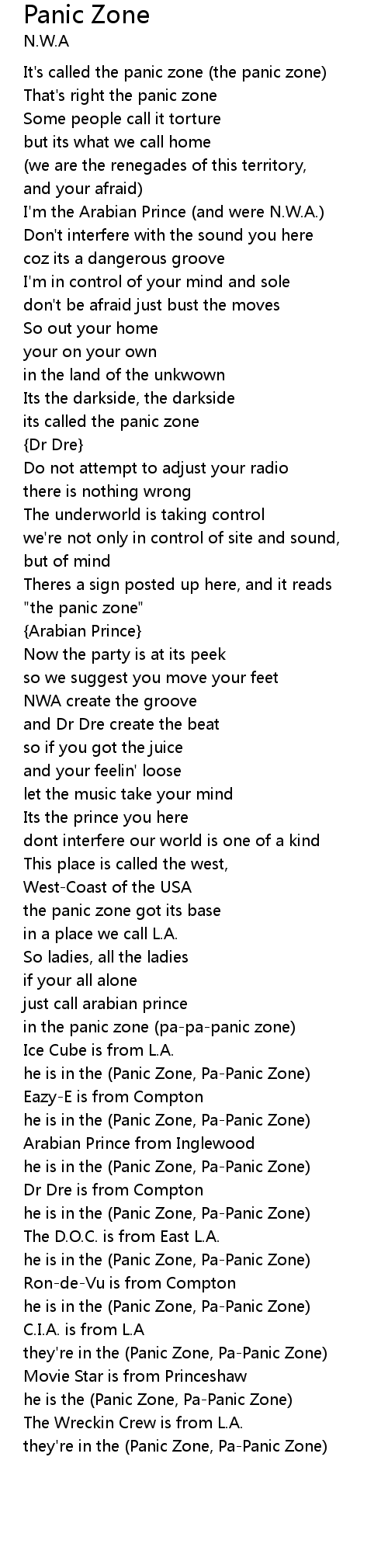 they're in the (Panic Zone, Pa-Panic Zone) |