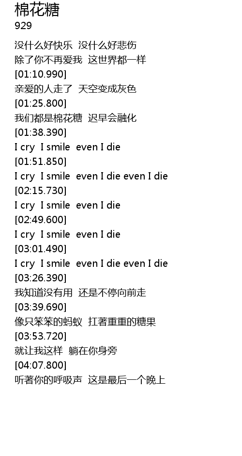 | [01:55.190] | I cry I smile even I die even I die |