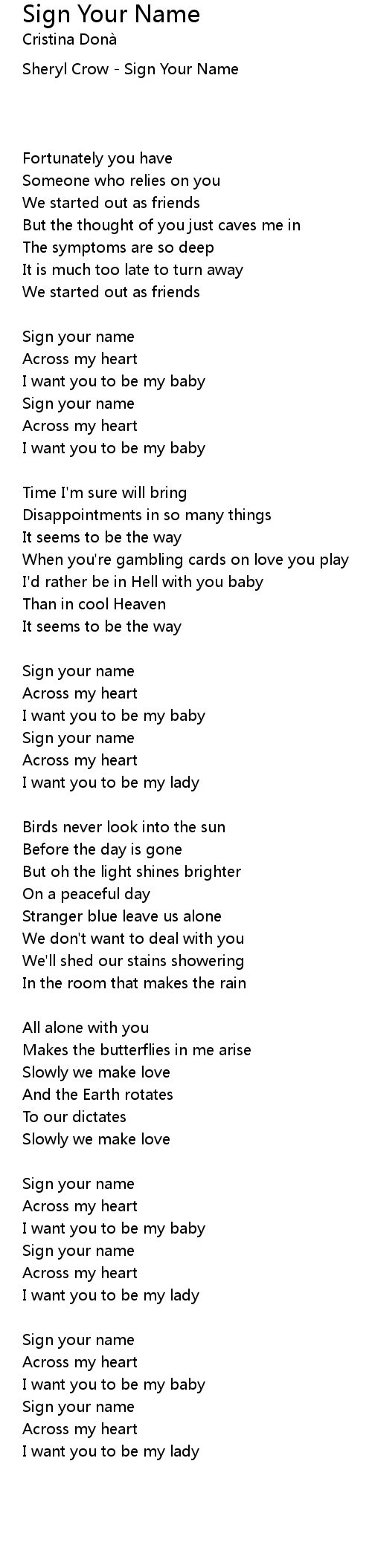 Sheryl Crow - Sign Your Name |