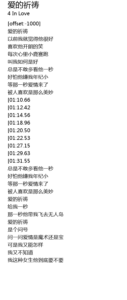 | [02:54.82][01:10.66] | 爱的祈祷 |
