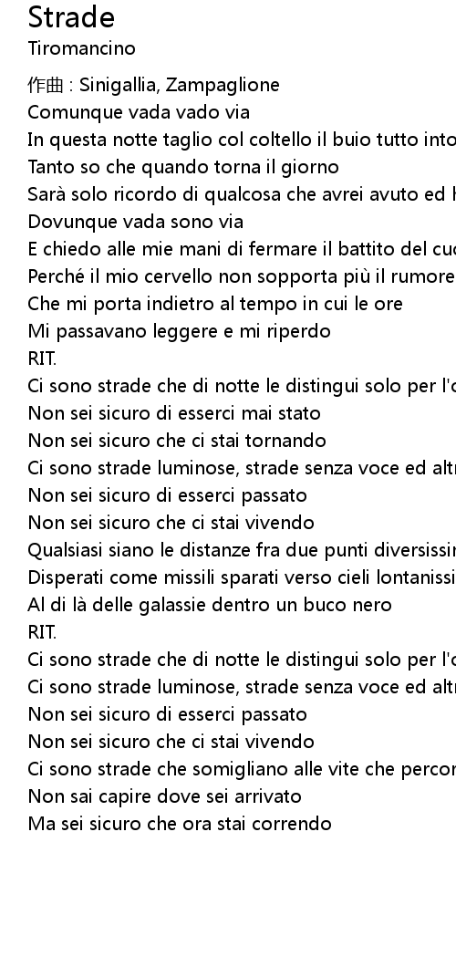 | Ci sono strade luminose, strade senza voce ed altre invece senza tempo | |