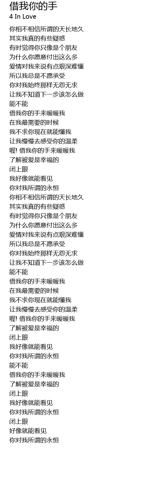 | [02:46.92] | jiè wǒ nǐ de shǒu lái nuǎn nuǎn wǒ |