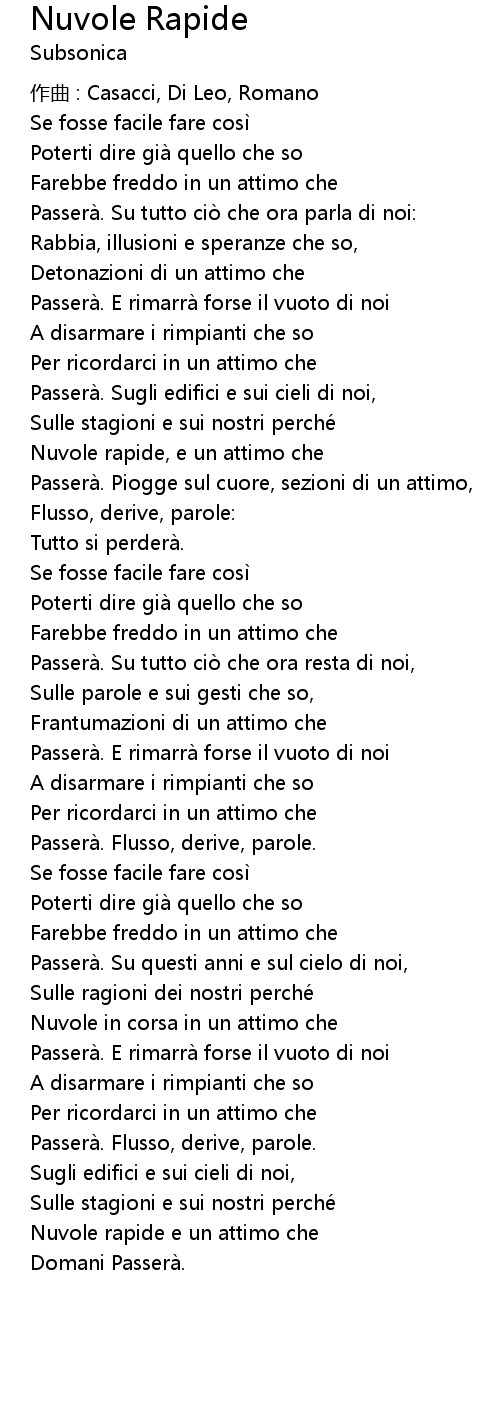 | Passerà. Su tutto ciò che ora parla di noi: | |