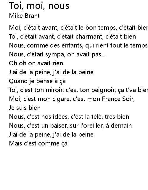 | Toi, c'était avant, c'était charmant, c'était bien | |