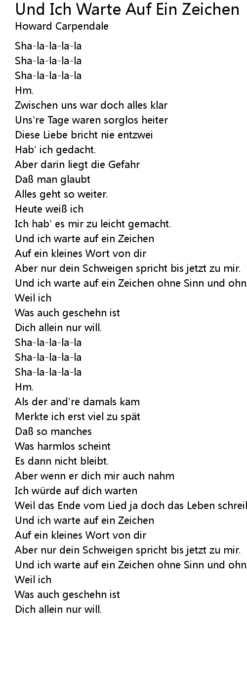 | Song | Und Ich Warte Auf Ein Zeichen |