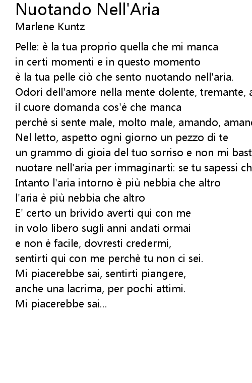 | e la tua pelle cio che sento nuotando nell' aria. | |