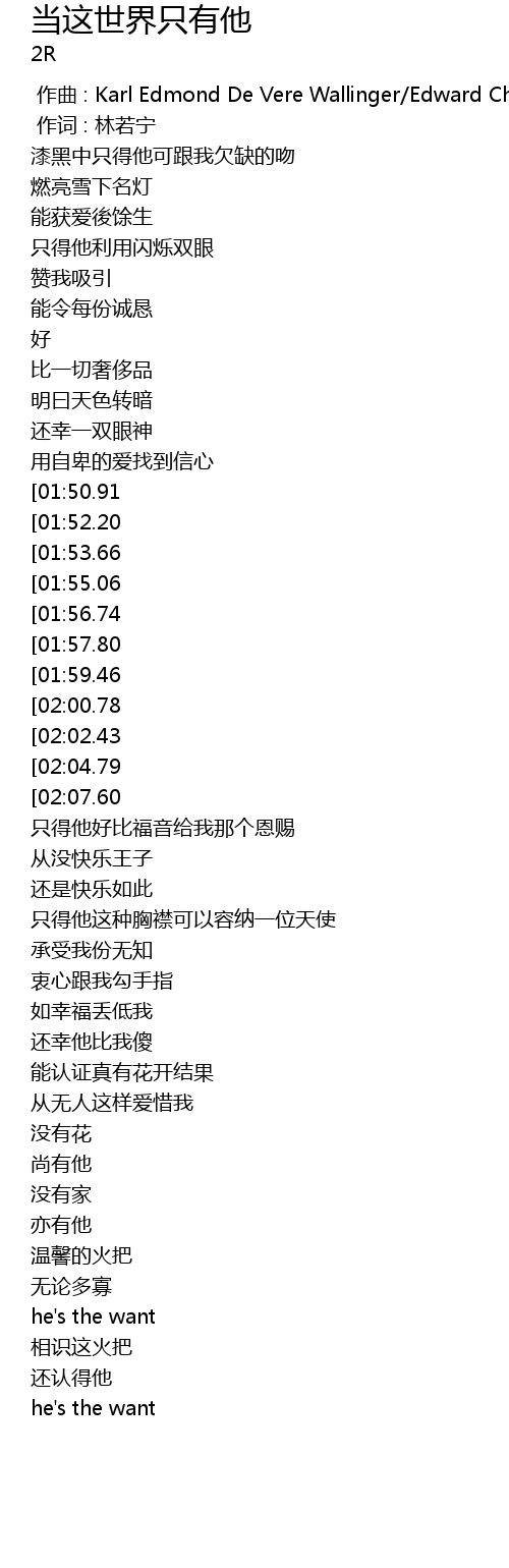 | [02:16.63][01:53.66][00:49.44] | 我有他 |