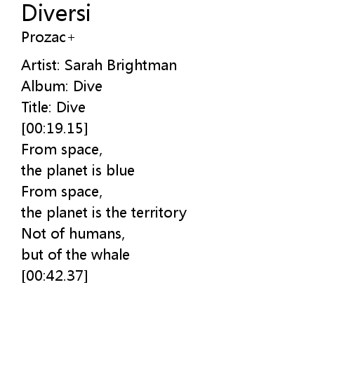 | [00:11.08] | Artist: Sarah Brightman |