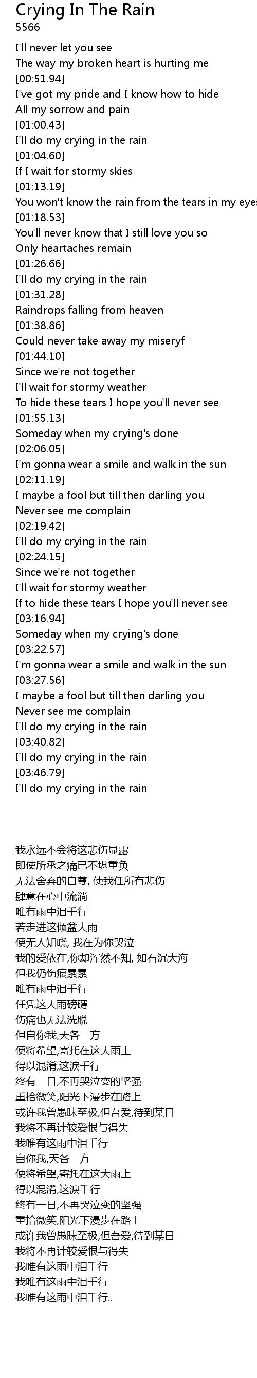 | [03:42.33] | I'll do my crying in the rain |