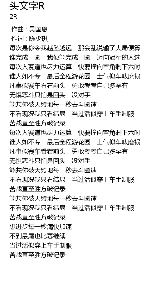 | Song | 头文字R |