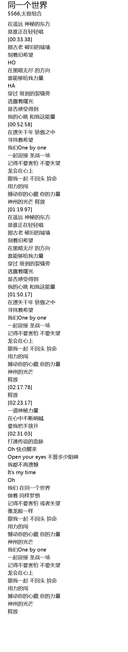 | [02:45.74] | wǒ men zài tóng yí gè shì jiè |