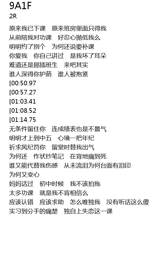 | [01:41.89] | 祈求风纪罚你 留堂时替我出气 |