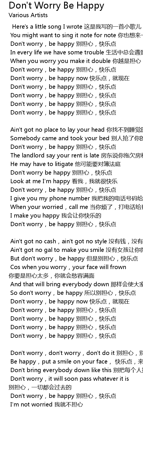 | So don't worry,be happy 所以别担心,快乐点 | |