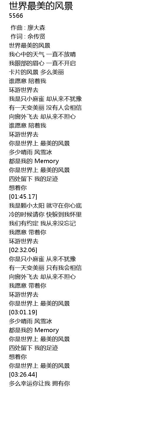 | [03:20.37] | ni shi shi jie shang zui mei di feng jing |