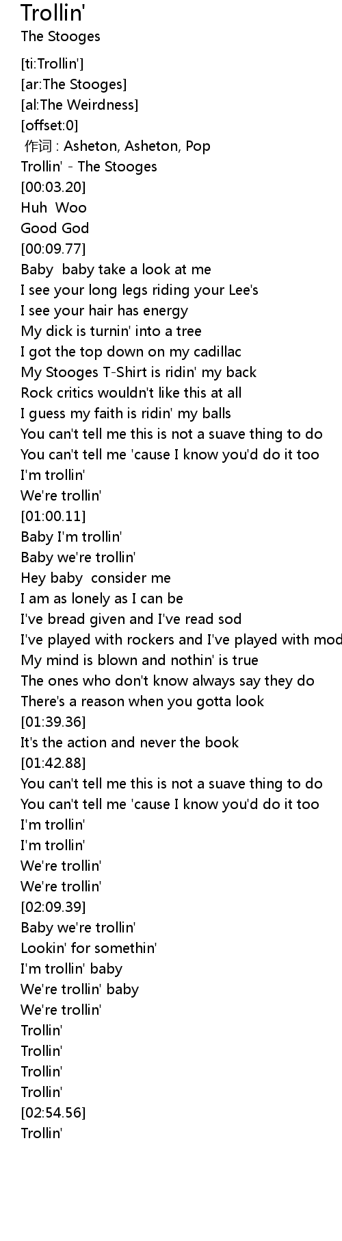 | [00:33.00] | My Stooges T-Shirt is ridin' my back |