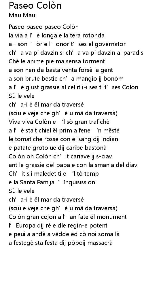| Colòn oh Colòn ch’it cariave ij s-ciav | |